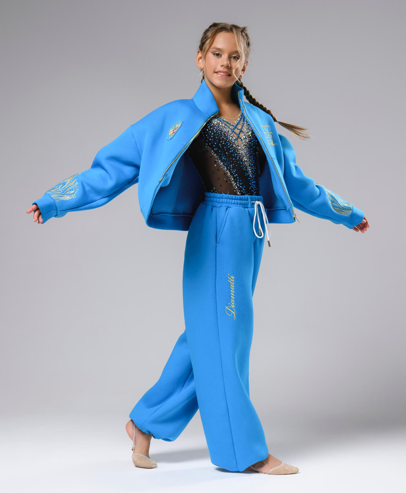 Дополняем базовую одежду яркими окантовками, фигурными вставками, металлизированной вышивкой и яркими принтами. Юные спортсменки чувствуют себя уверенно и стильно, заряжаются энергией на новые успехи.